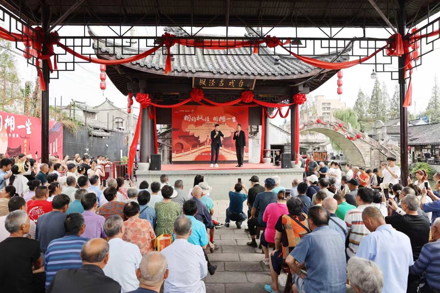 10月1日下午,距离笑天地专场滑稽戏开演还有半个小时,枫泾古戏台前的长条凳上早已座无虚席。作为枫泾国庆期间的首场文旅活动,上海知名滑稽笑星轮番登台献艺,女生独唱《我爱你中国》、独角戏《欢乐同行》等节目引得台下掌声与欢呼声不断。