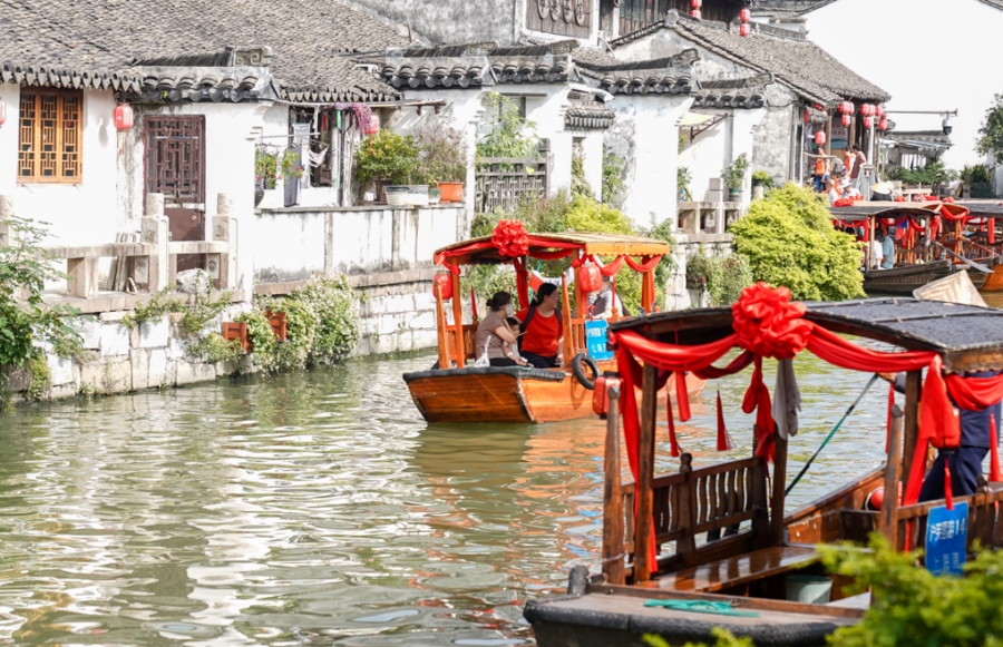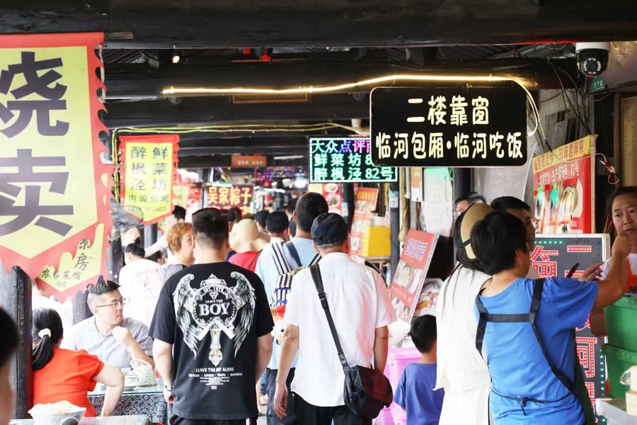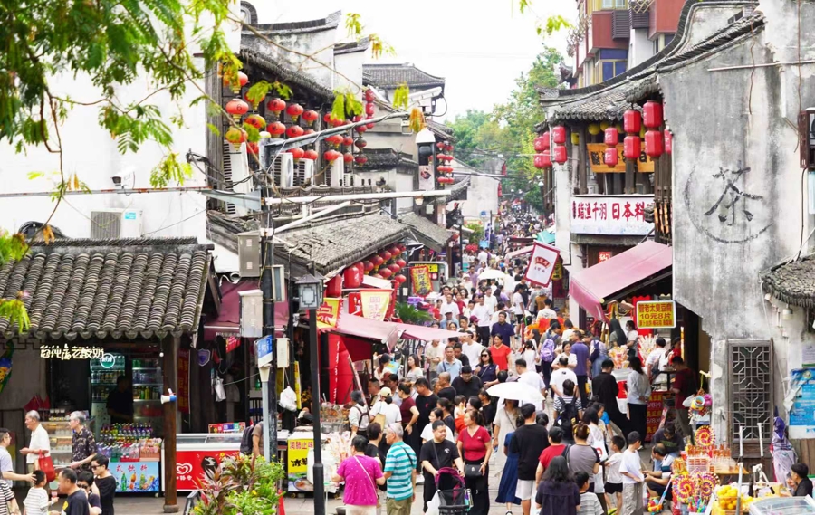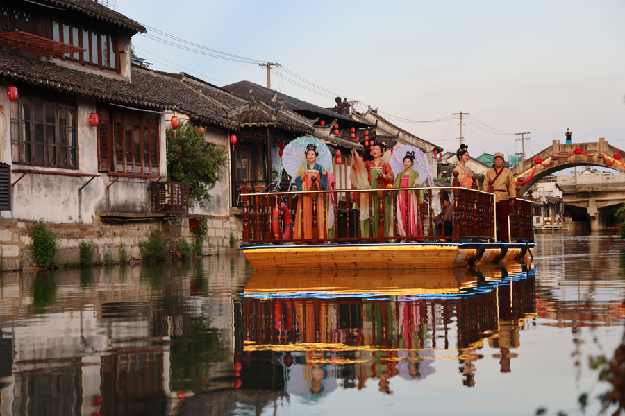 “白天寻画游船,夜间听歌赏灯光。”国庆长假期间,在沪郊千年古镇枫泾,“文旅农商体展”融合发力,时下热门的非遗体验、夜间市河船表演、枫雅韵集、笑天地专场演出等轮番登场,让市民足不出“沪”也能解锁丰富多样的国潮玩法。